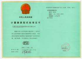 中華人民共和國計量器具生產許可證: 蘇制02000305號
